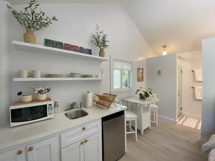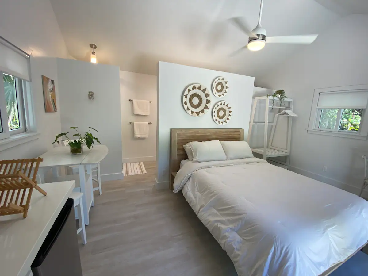 Step inside Coco Cottage and be enchanted by its Island Chic ambiance, characterized by a soothing palette of white and neutral tones complemented by vibrant accents of local Bahamian art. With 400 square feet of interior space, this "Tiny Home" offers all the essential features for a perfect island getaway. Additionally, you'll have exclusive access to a private 2,000 square feet garden, complete with outdoor seating, where you can bask in the tranquility of your own tropical oasis.