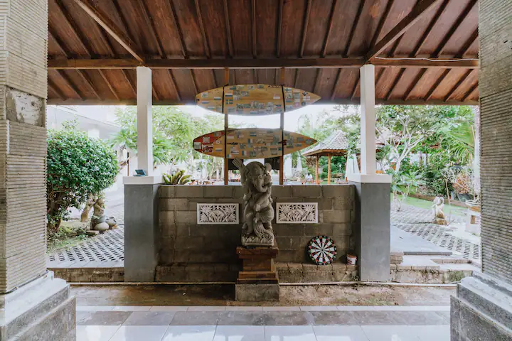 Introducing the perfect destination for surfers seeking to connect with like-minded individuals from around the world. Nestled amidst the breathtaking beauty of Uluwatu, this accommodation offers an idyllic retreat. With clean and comfortable rooms featuring amenities like air conditioning, hot water, and reliable Wi-Fi, it's the ideal base for surfers looking to immerse themselves in the thrilling waves. Conveniently located within a one-minute walk from local restaurants and a leisurely 10-15 minute stroll to the beach, guests can enjoy the refreshing sea breeze, mighty swells, and captivating sunset views that make Uluwatu a surfer's paradise.