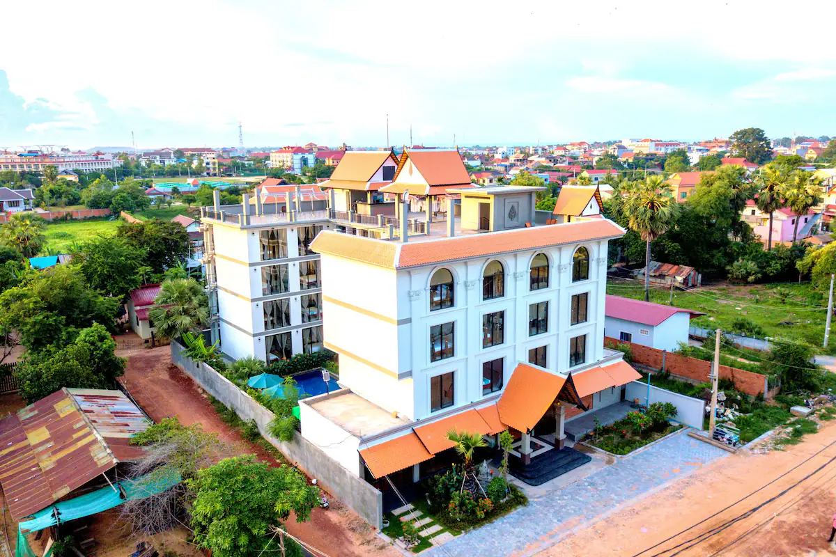 Guests are invited to indulge in the remarkable Khmer hospitality and unparalleled comfort offered by a 4-Star hotel located just 1.5km from the city center. Since 2016, this hotel has been dedicated to providing an exceptional stay that embraces the warmth and traditions of Khmer culture. The range of complimentary amenities includes a swimming pool, lounge, 24-hour reception, garden, parking, welcome drink, breakfast, and daily room refreshments. Additional services such as restaurant dining, tour arrangements, cooking classes, and special event arrangements are available at reasonable prices.