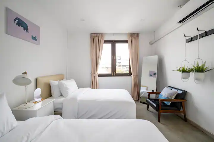 Indulge in a boutique hotel experience with all the comforts of home in this stunning 3-bedroom penthouse. Boasting a spacious 185 sqm area, the high-ceiling living area with sunlight shade window and elegant Scandinavian-inspired furniture is sure to impress. With keyless entry and free wifi (200 Mbps), this penthouse provides ultimate convenience and luxury.