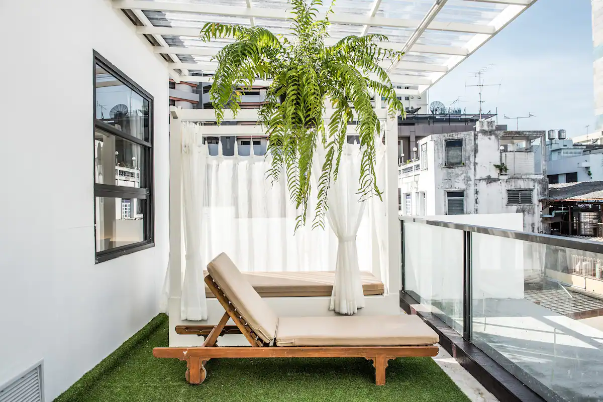 Step outside to the terrace and be surrounded by the lush greenery of two cabanas and big fern, providing a serene escape from the bustle of the city. Guests can also enjoy the common hotel lobby area and complimentary coffee capsule (Dolce Gusto).