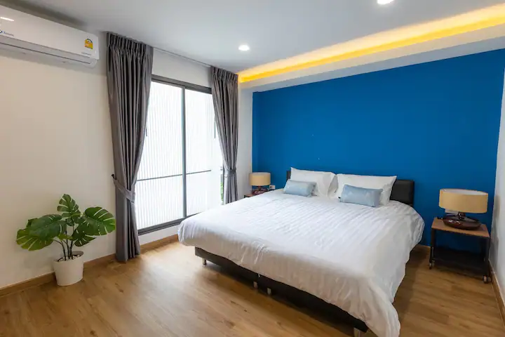 Located just a 5-minute walk from the BTS Skytrain, this villa is situated in a residential area close to famous department stores, restaurants, and street food markets. Plus, if you need a ride to and from the airport, the owner can arrange a rental van for you. With free Wi-Fi, luggage storage, and essential amenities, this private pool villa is the ultimate choice for a luxurious stay in Bangkok.