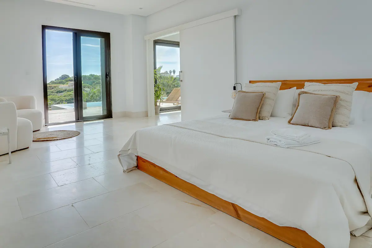 Villa Gravity boasts six luxurious bedrooms, accommodating up to 12 guests. Each bedroom exudes elegance and comfort, with king-size beds and thoughtfully designed en-suite bathrooms. The primary bedroom features a terrace and offers mesmerizing views of the sea and golf course. Additional bedrooms offer balconies with panoramic sea and golf course views, ensuring a truly immersive experience of the surrounding natural beauty. The villa's sixth bedroom shares access to the living room bathroom, providing convenience and flexibility for larger groups.