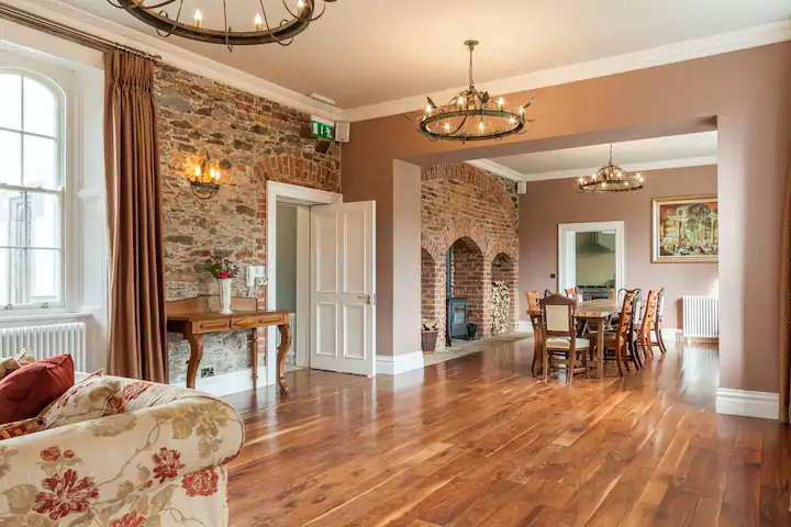 Steeped in history, Wilton Castle is an integral part of the local landscape, with its origins tracing back to 1247 when the first fortified tower was constructed on the land. Today, this magnificent estate boasts seven bedrooms, comfortably accommodating up to 14 guests. Each bedroom offers a peaceful sanctuary, ensuring a restful night's sleep and rejuvenating stay.